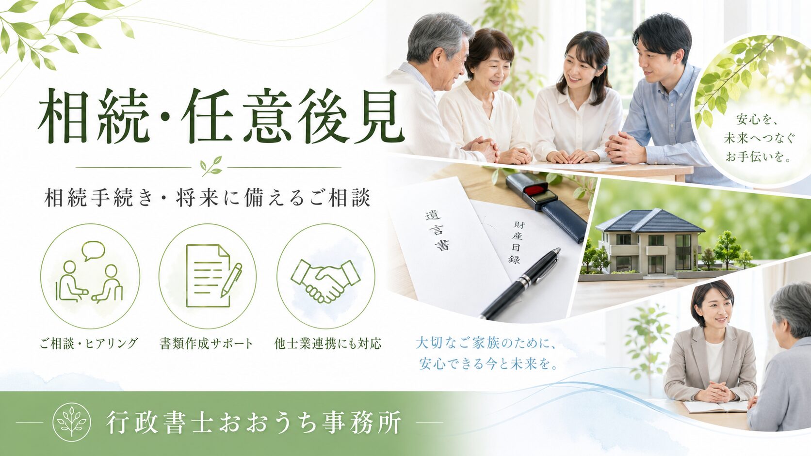 行政書士おおうち事務所が、状況を丁寧にお聞きし、必要な手続きや進め方をご案内いたします。
